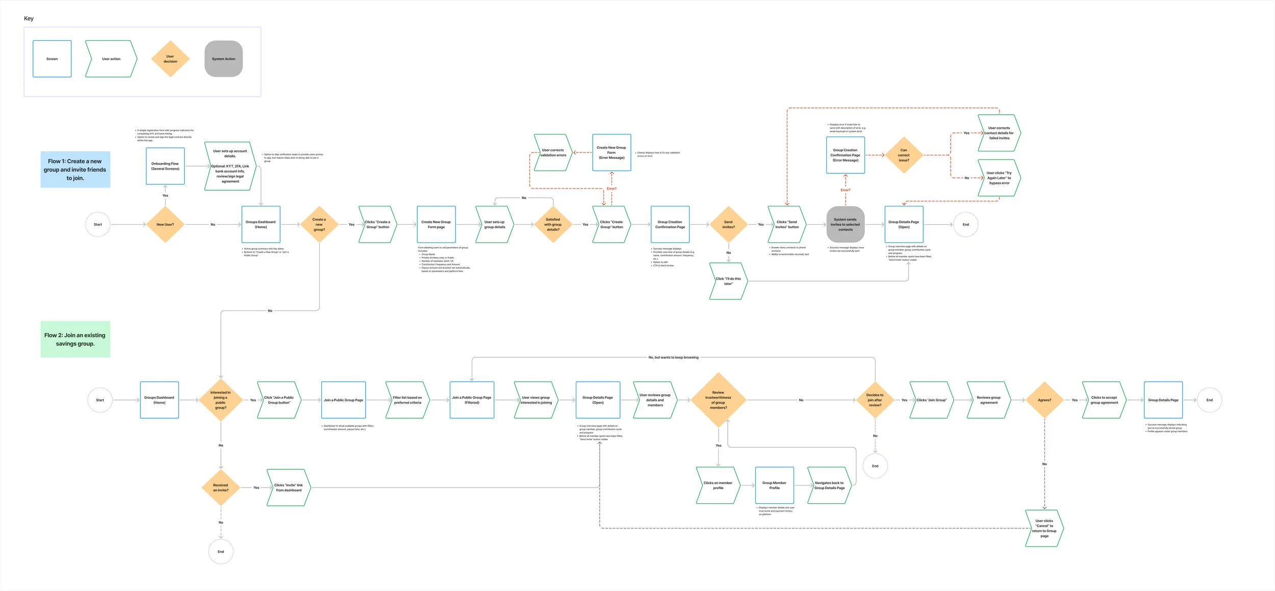 I led the development of user flows for two critical actions—creating and joining a group. These flows clarified the user journey, aligned the design team on core functionality, and helped identify edge cases early, improving overall UX and reducing rework during implementation.
