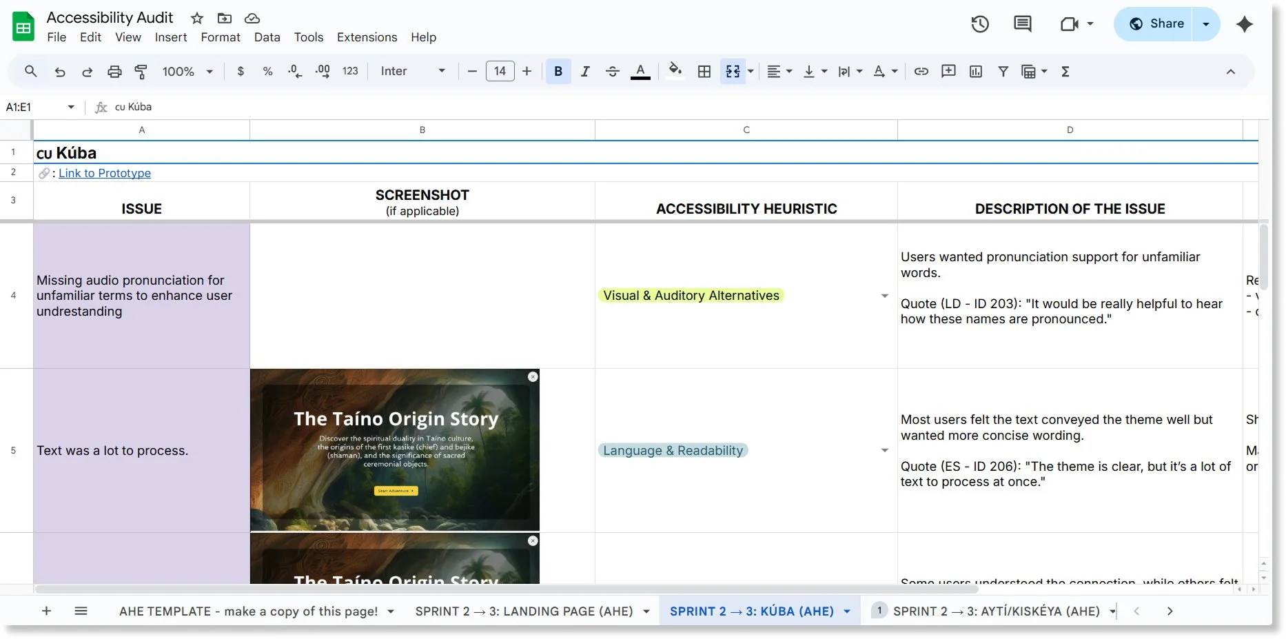 To tackle the project's scope, we divided into focused sub-teams with content and UX design, each exploring a different aspect of Taíno heritage: spirituality, music, and writing. I led content design for the music experience, translating Taíno musical traditions into an accessible, immersive learning experience.